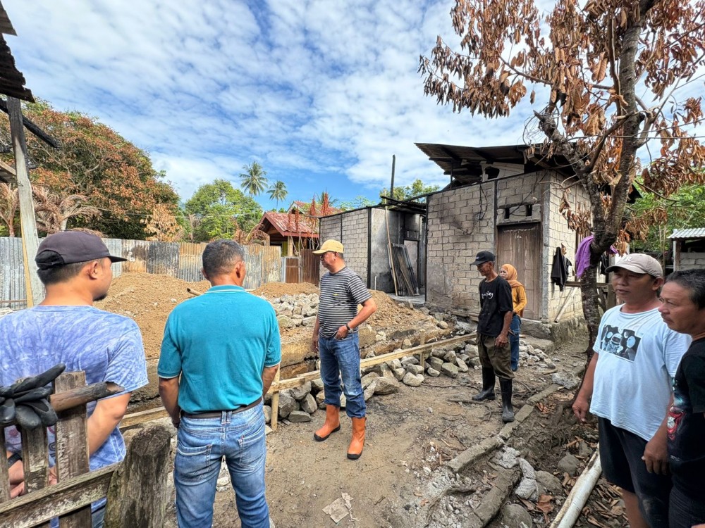 Bupati Bolaang Mongondow Timur (Boltim) Oskar Manoppo, meletakkan batu pertama pembangunan rumah bagi warga korban kebakaran di Desa Buyandi, Kecamatan Modayag, pada Minggu (2/11/2025).