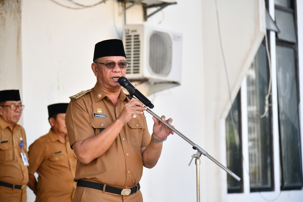 Bupati Bolaang Mongondow Timur (Boltim), Oskar Manoppo, memimpin apel kerja di Halaman Kantor Bupati Boltim pada Senin (15/12/2025). Apel tersebut diikuti oleh jajaran aparatur sipil negara (ASN) di lingkungan Pemerintah Kabupaten Boltim.
