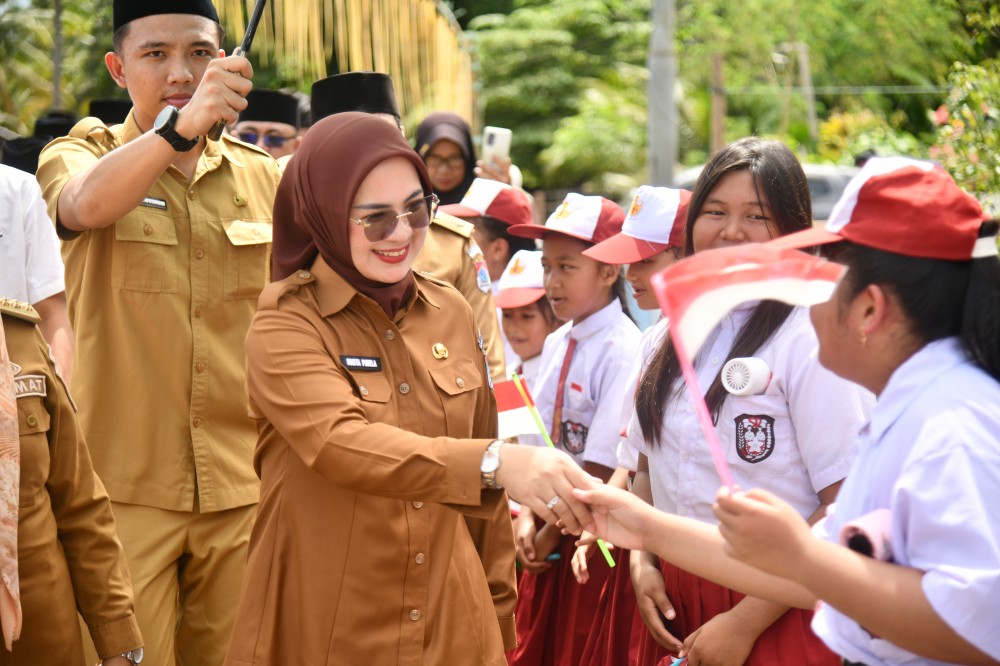 Usai prosesi adat, Bupati dan Ketua TP-PKK menyapa para siswa SDN 1 Kayumoyondi. Dengan penuh kehangatan, Bupati menyalami satu per satu anak-anak sekolah yang tampak antusias dan gembira. Suasana kian semarak ketika masyarakat berebut menyalami Bupati, menyambutnya dengan senyum dan kegembiraan.