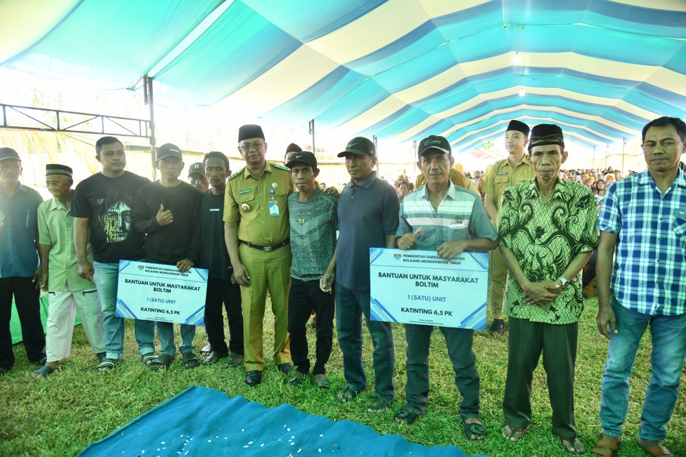 Kunjungan kerja tersebut dirangkaikan dengan penyerahan berbagai bantuan kepada masyarakat Kecamatan Tutuyan. Bantuan yang diserahkan meliputi: