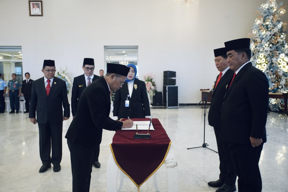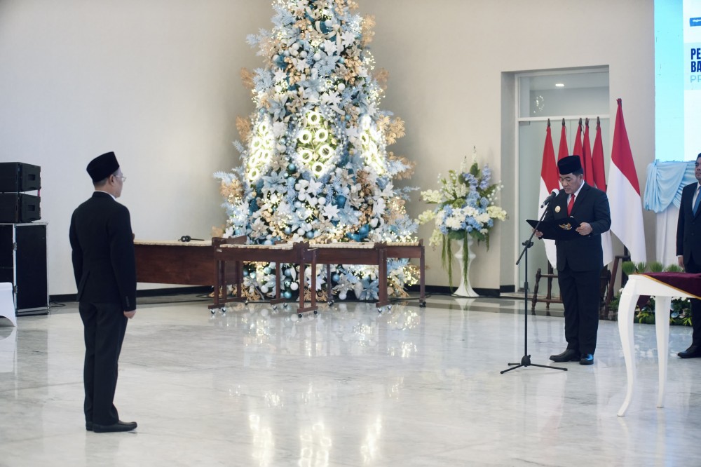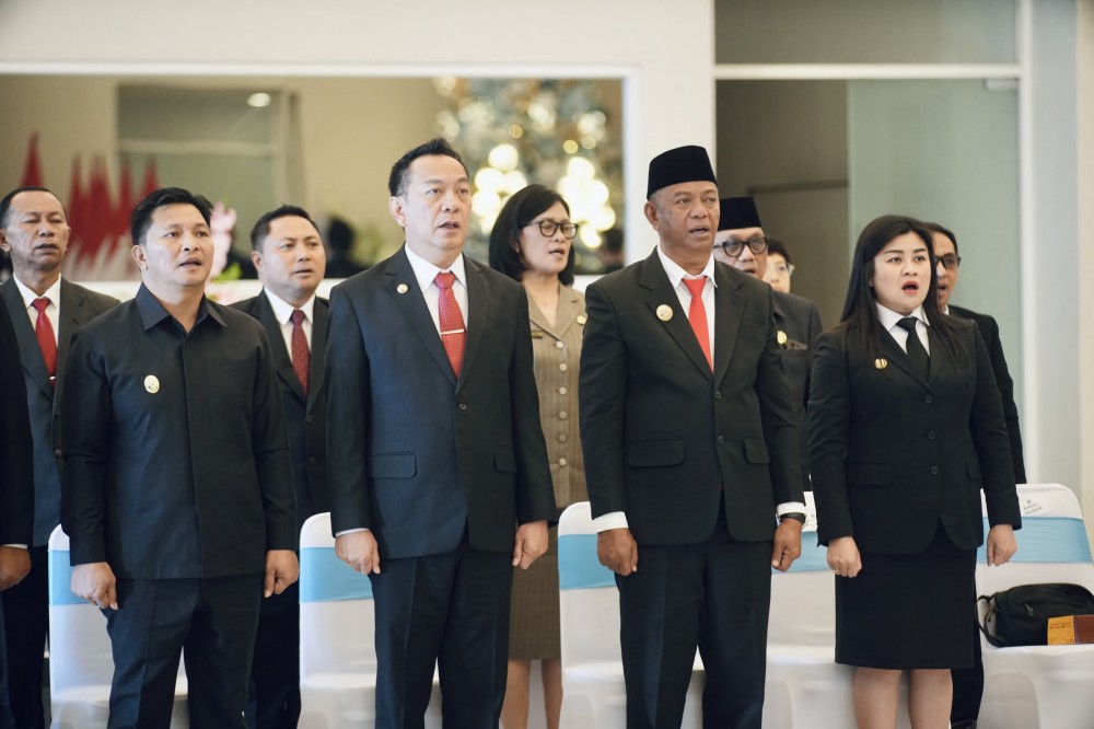 Bupati Bolaang Mongondow Timur (Boltim) Oskar Manoppo menghadiri acara pengukuhan Kepala Perwakilan Badan Pengawasan Keuangan dan Pembangunan (BPKP) Provinsi Sulawesi Utara, Heru Setiawan, pada Selasa (21/10/2025).