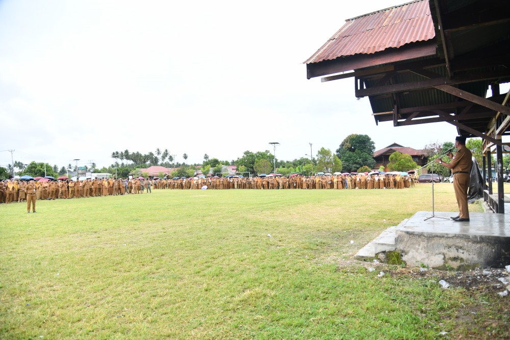 Bupati Bolaang Mongondow Timur (Boltim), Oskar Manoppo, memimpin apel kerja perdana Aparatur Sipil Negara (ASN) di lingkungan Pemerintah Kabupaten Boltim Tahun 2026 yang digelar di Lapangan Gogaluman, Tutuyan, Senin (5/1/2026). Apel tersebut dihadiri oleh seluruh ASN, pimpinan Organisasi Perangkat Daerah (OPD), serta aparat desa se-Kabupaten Boltim.
