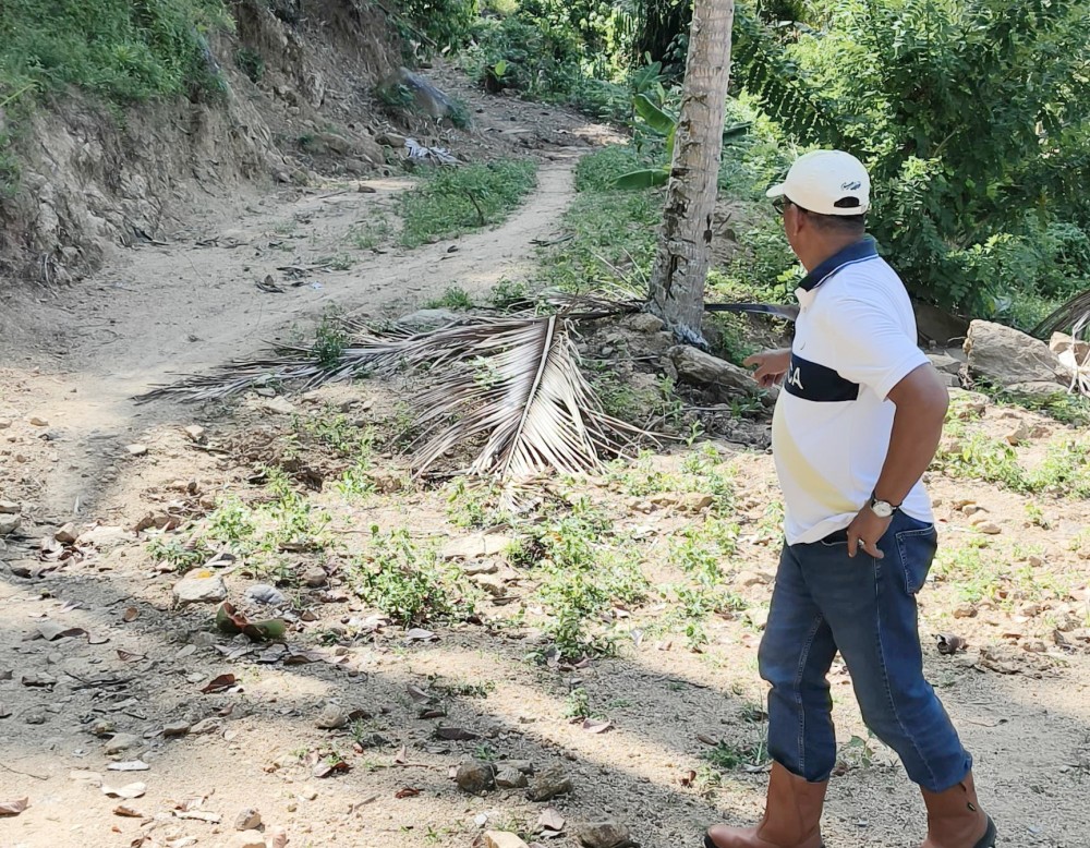 Bupati Bolaang Mongondow Timur (Boltim) Oskar Manoppo meninjau lokasi yang direncanakan akan menjadi jalur penghubung antara Desa Jiko Belanga, Kecamatan Nuangan, dengan Desa Iligon, Kabupaten Bolaang Mongondow Selatan, pada Minggu (19/10/2025).