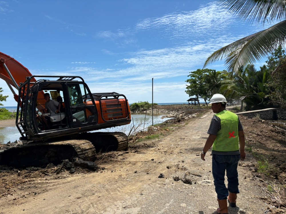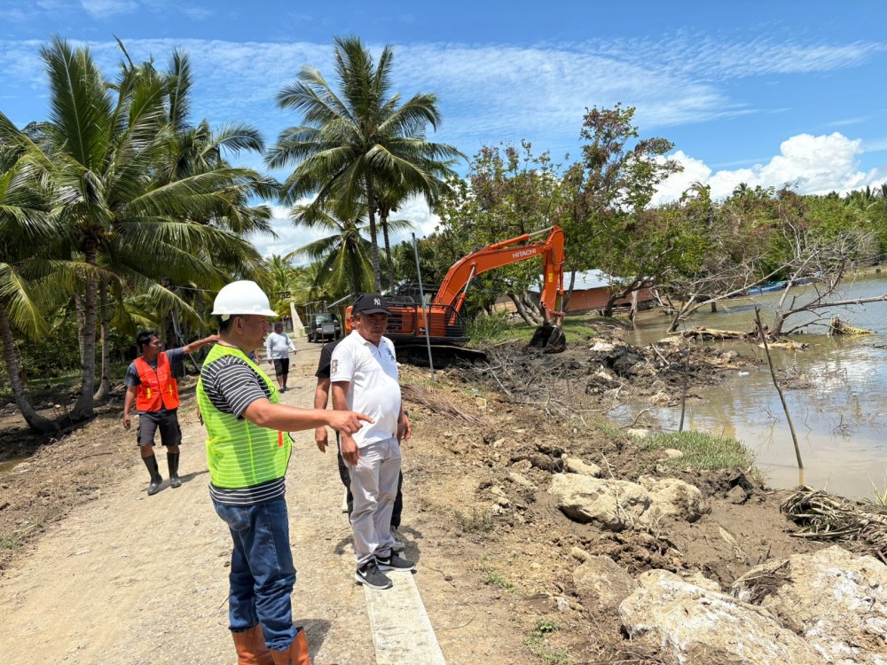 Bupati Bolaang Mongondow Timur (Boltim) Oskar Manoppo, meninjau langsung progres pembangunan tanggul sungai di Desa Buyat Tengah, Kecamatan Kotabunan, pada Sabtu (1/11/2025).