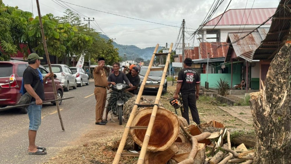 Sementara itu, Kepala Badan Penanggulangan Bencana Daerah (BPBD) Boltim, Fitra Damopolii, menjelaskan bahwa penebangan dilakukan terhadap pohon-pohon di sepanjang jalan wilayah Ibu Kota Kecamatan yang berpotensi membahayakan pengguna jalan.