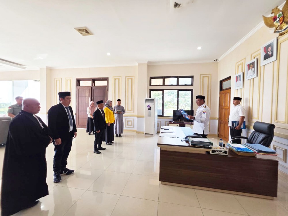 Bupati Bolaang Mongondow Timur (Boltim), Oskar Manoppo, secara resmi mengambil sumpah jabatan Pejabat Fungsional Penyuluh Pertanian yang dilaksanakan di Ruang Kerja Bupati, pada Rabu (31/12/2025).