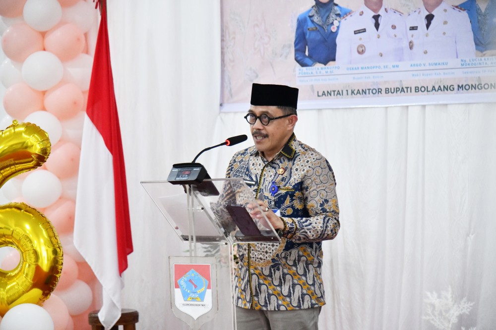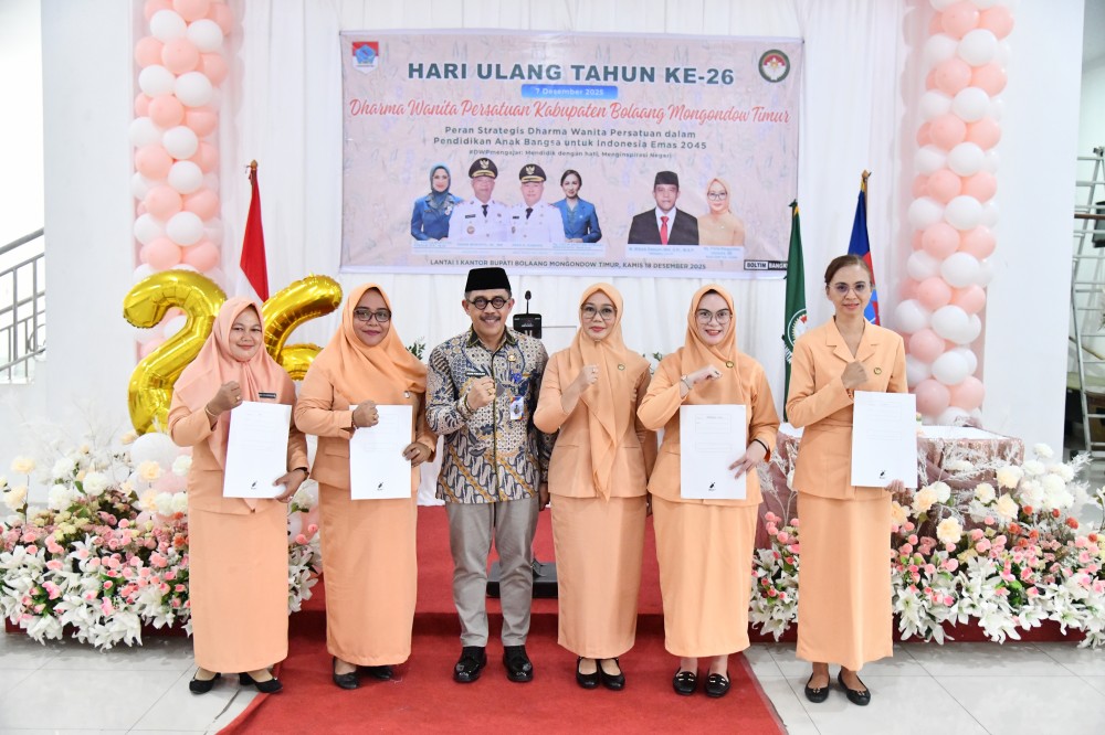 Mewakili Bupati Bolaang Mongondow Timur (Boltim), Oskar Manoppo, Sekretaris Daerah Boltim, M. Iksan Pangalima, menghadiri peringatan Hari Ulang Tahun (HUT) ke-26 Dharma Wanita Persatuan (DWP) Kabupaten Bolaang Mongondow Timur yang dilaksanakan di Kantor Bupati Boltim, Kamis (18/12/2025). Kegiatan tersebut turut dihadiri oleh sejumlah pimpinan Organisasi Perangkat Daerah (OPD) di lingkungan Pemerintah Kabupaten Bolaang Mongondow Timur.