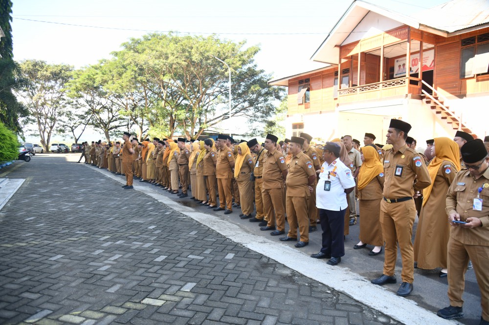 Dalam sambutannya, Sekda menegaskan pentingnya bagi seluruh Aparatur Sipil Negara (ASN) untuk kembali pada jati diri sebagai abdi negara yang taat terhadap peraturan dan perundang-undangan yang berlaku.