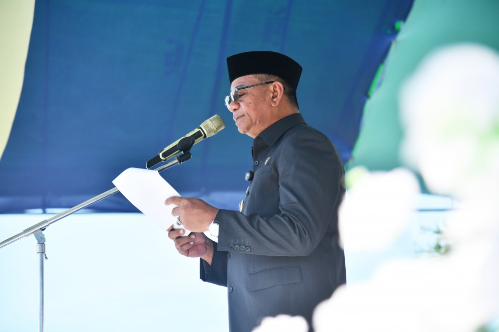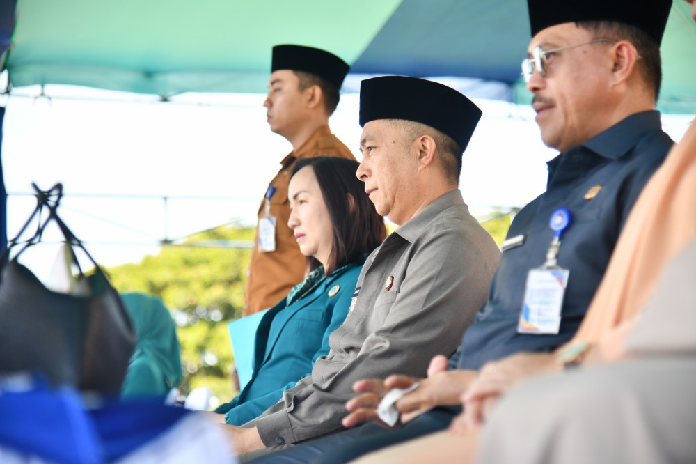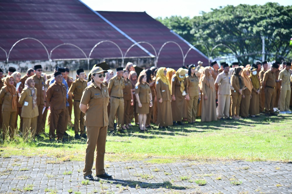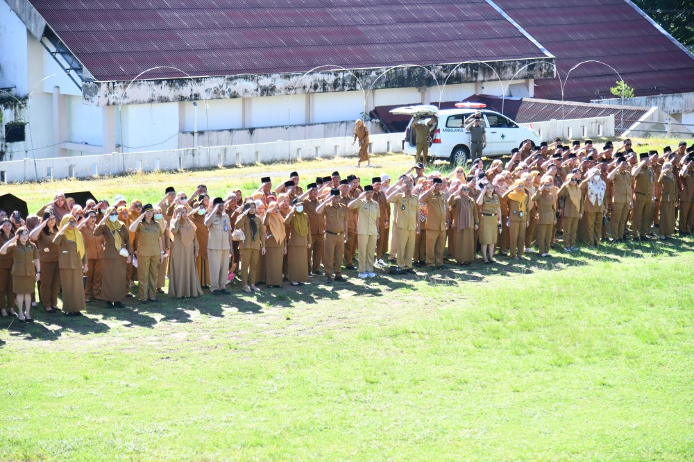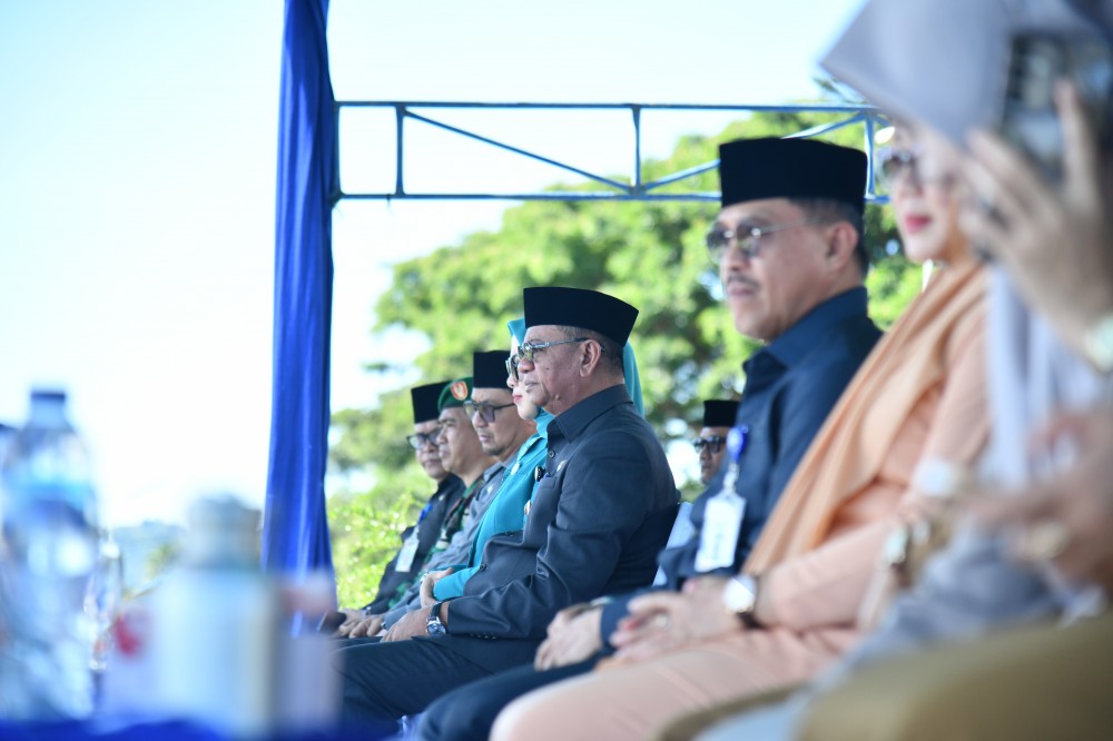 Bupati Bolaang Mongondow Timur (Boltim), Oskar Manoppo, bertindak sebagai Inspektur Upacara pada Upacara Peringatan Hari Ibu ke-97 dan Hari Bela Negara ke-77 Tahun 2025 yang dilaksanakan di Lapangan Kantor Bupati Boltim, Senin (22/12/2025).