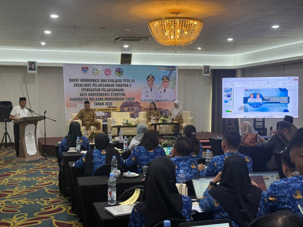 Mewakili Bupati Bolaang Mongondow Timur (Boltim) Oskar Manoppo, Wakil Bupati Argo V. Sumaiku secara resmi membuka Rapat Koordinasi dan Evaluasi Tim Percepatan Pencegahan dan Penurunan Stunting (TP3S) III sekaligus Pelaksanaan Tahapan 3 (Penguatan Pelaksanaan) Aksi Konvergensi Stunting Kabupaten Boltim Tahun 2025, yang digelar di Kotamobagu pada Senin (10/11/2025).