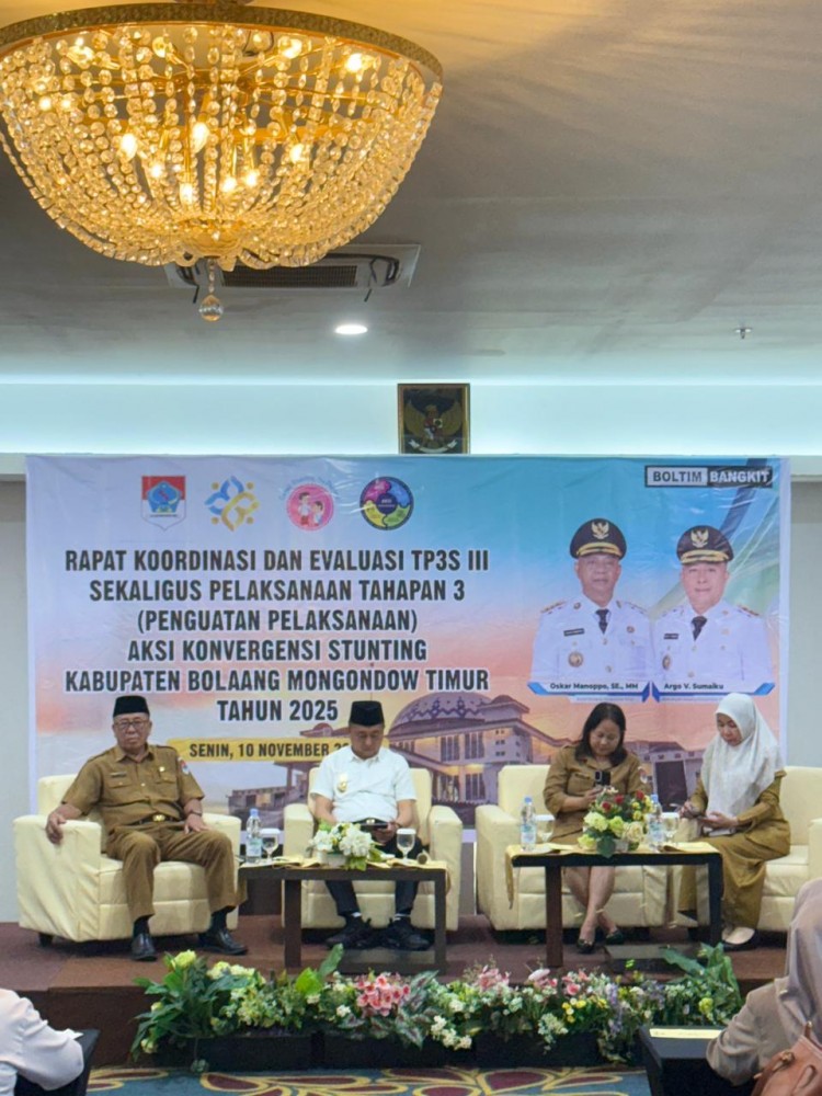 “Dengan mengucap Bismillahirrahmanirrahim, pada hari ini saya secara resmi membuka Rapat Koordinasi dan Evaluasi Tim Pencegahan dan Percepatan Penurunan Stunting (TP3S) serta Pelaksanaan Tahapan 3 Aksi Konvergensi Stunting di Kabupaten Bolaang Mongondow Timur Tahun 2025,” tutupnya.