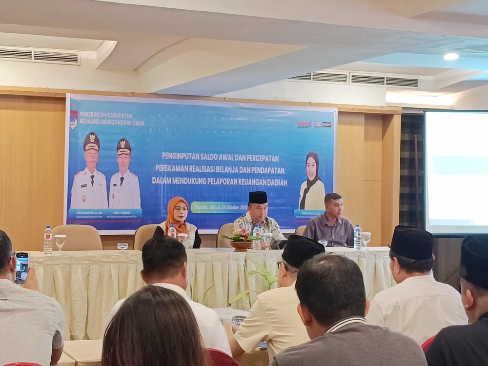 Mewakili Bupati Bolaang Mongondow Timur (Boltim) Oskar Manoppo, Wakil Bupati Argo V. Sumaiku secara resmi menutup kegiatan Bimbingan Teknis (Bimtek) Penginputan Saldo Awal dan Percepatan Perekaman Realisasi Belanja dan Pendapatan dalam Mendukung Pelaporan Keuangan Daerah, yang diselenggarakan oleh Badan Pengelolaan Keuangan dan Pendapatan Daerah (BPKPD) Boltim di Hotel Quality, Manado, Jumat (24/10/2025).